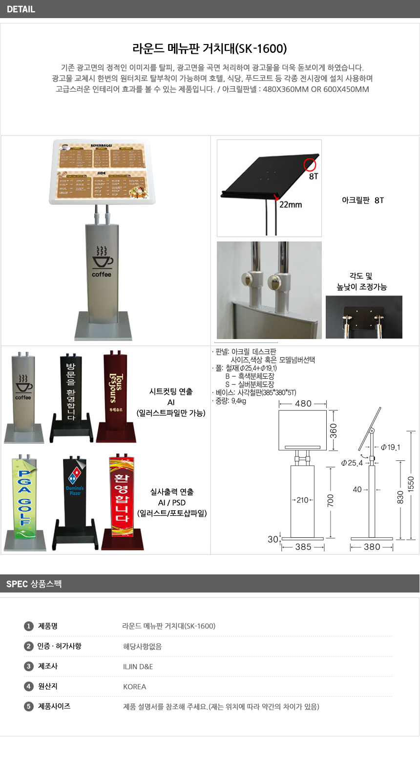 [ÀÏÁø] ¶ó¿îµå ¸Þ´ºÆÇ °ÅÄ¡´ë(SK-1600, 480x360mm/600x450mm ¼±Åð¡´É, È£ÅÚ/ǪµåÄÚÆ® °Ô½ÃÆÇ, ±¤°í¹° ±³Ã¼ ¿øÅÍÄ¡ Å»ºÎÂø)
