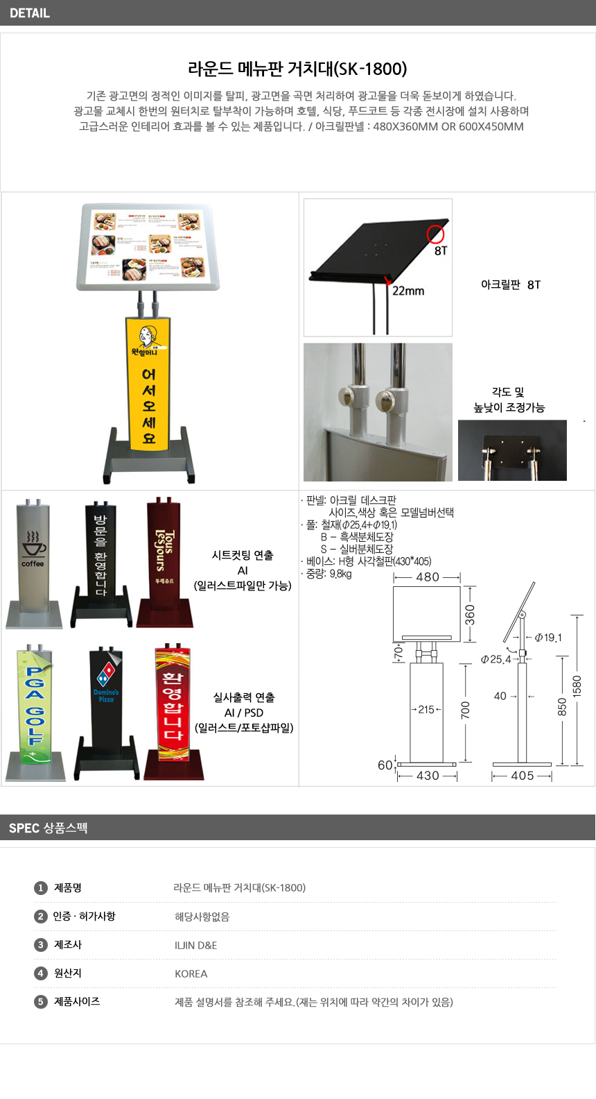 [ÀÏÁø] ¶ó¿îµå ¸Þ´ºÆÇ °ÅÄ¡´ë(SK-1800, 480x360mm/600x450mm ¼±Åð¡´É, È£ÅÚ/ǪµåÄÚÆ® °Ô½ÃÆÇ, ±¤°í¹° ±³Ã¼ ¿øÅÍÄ¡ Å»ºÎÂø)