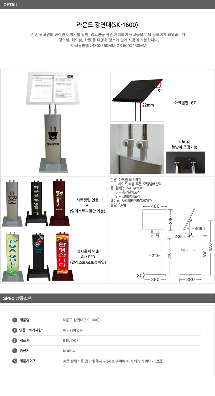 [ÀÏÁø] ¶ó¿îµå °­¿¬´ë(SK-1600, 480x360mm/600x450mm ¼±Åð¡´É, °­ÀǽÇ/ȸÀǽÇ/Çпø/Çб³ ³ôÀÌ Á¶Àý °­¿¬´ë)