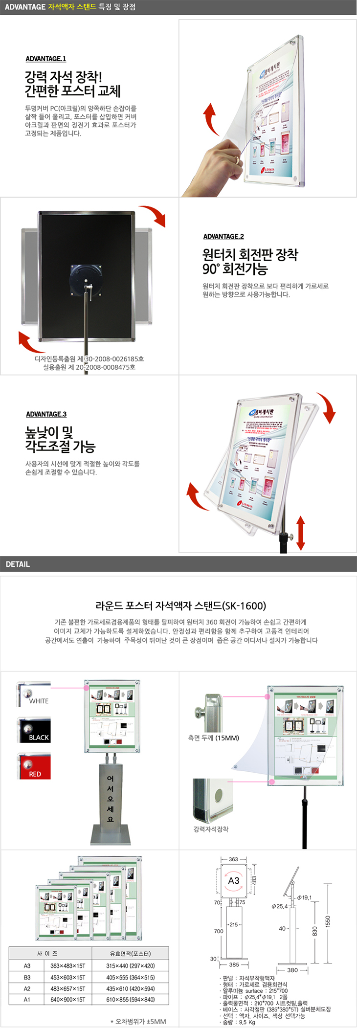 [ÀÏÁø] ¾Ë·ç¹Ì´½ ¶ó¿îµå Æ÷½ºÅÍ ÀÚ¼®¾×ÀÚ ½ºÅĵå(SK-1600, ½Ç¹öµµÀå, »çÀÌÁî:A3/B3/A2/A1¼±Åð¡´É, ÆÇ³Ú»ö»ó ¼±Åð¡´É, º£À̽º:385x380x5T)
