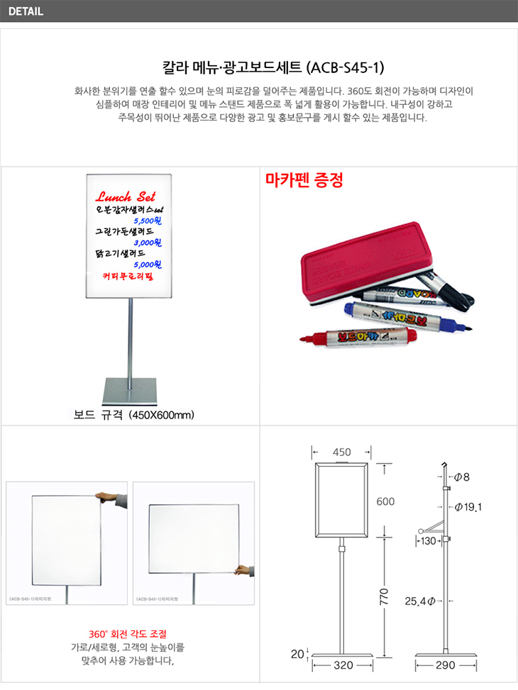 [ÀÏÁø] Ä®¶ó ¸Þ´º ±¤°íº¸µå¼¼Æ®(ACB-S45-1, ½Ç¹ö, °¡·Î¼¼·Î°â¿ë/ȸÀü½Ä, ¹é»öº¸µå:600x450mm)