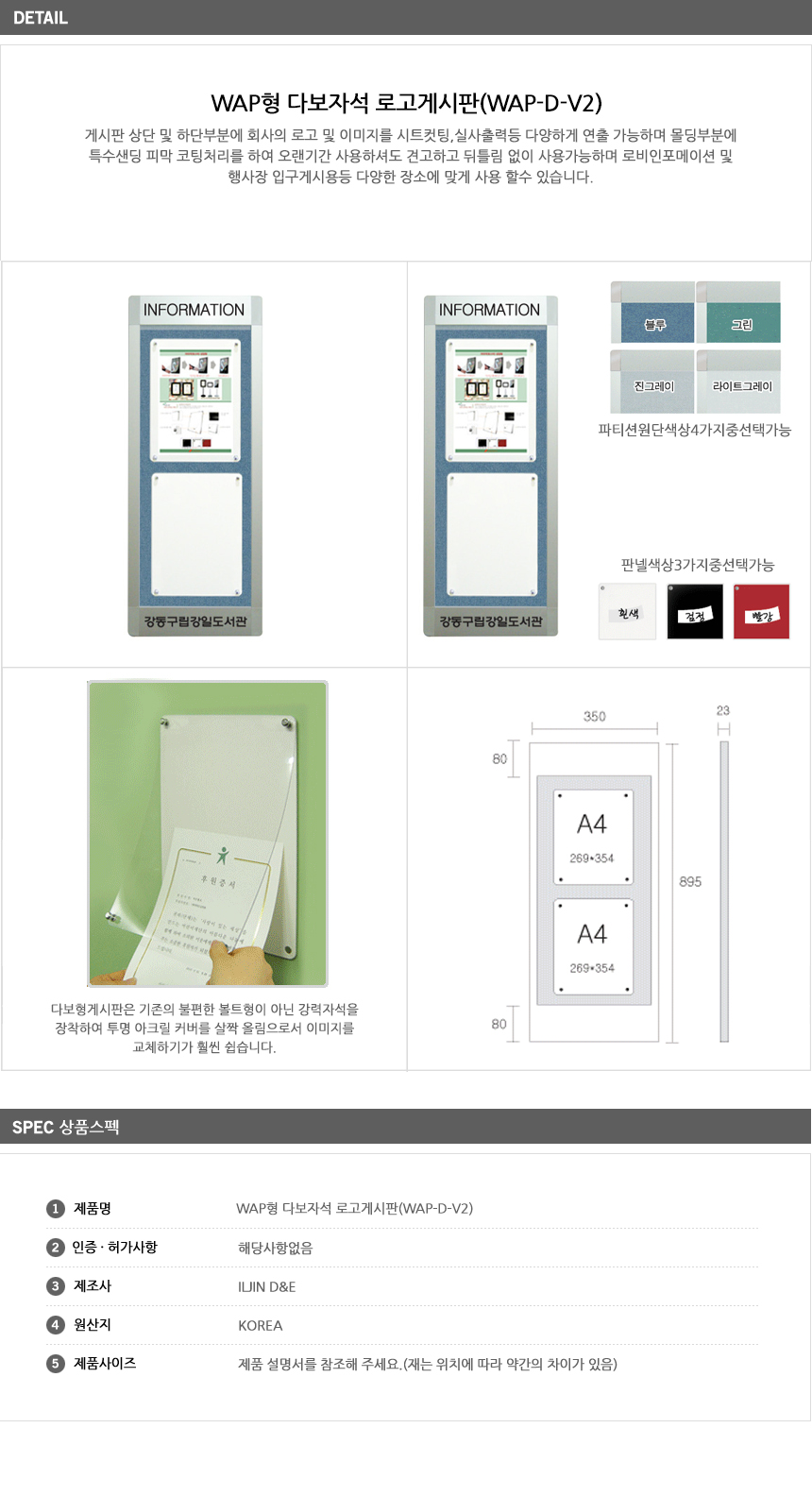 [ÀÏÁø] ¿¤¸®º£ÀÌÅÍ ¼³Ä¡ °Ô½ÃÆÇ/WAPÇü ´Ùº¸ ÀÚ¼® ·Î°í °Ô½ÃÆÇ(WAP-D-V2, A4 2¸Å 350x895mm, ¼¼·ÎÇü, ·Îºñ ÀÎÆ÷¸ÞÀ̼Ç/Çà»çÀå ÀÔ±¸)