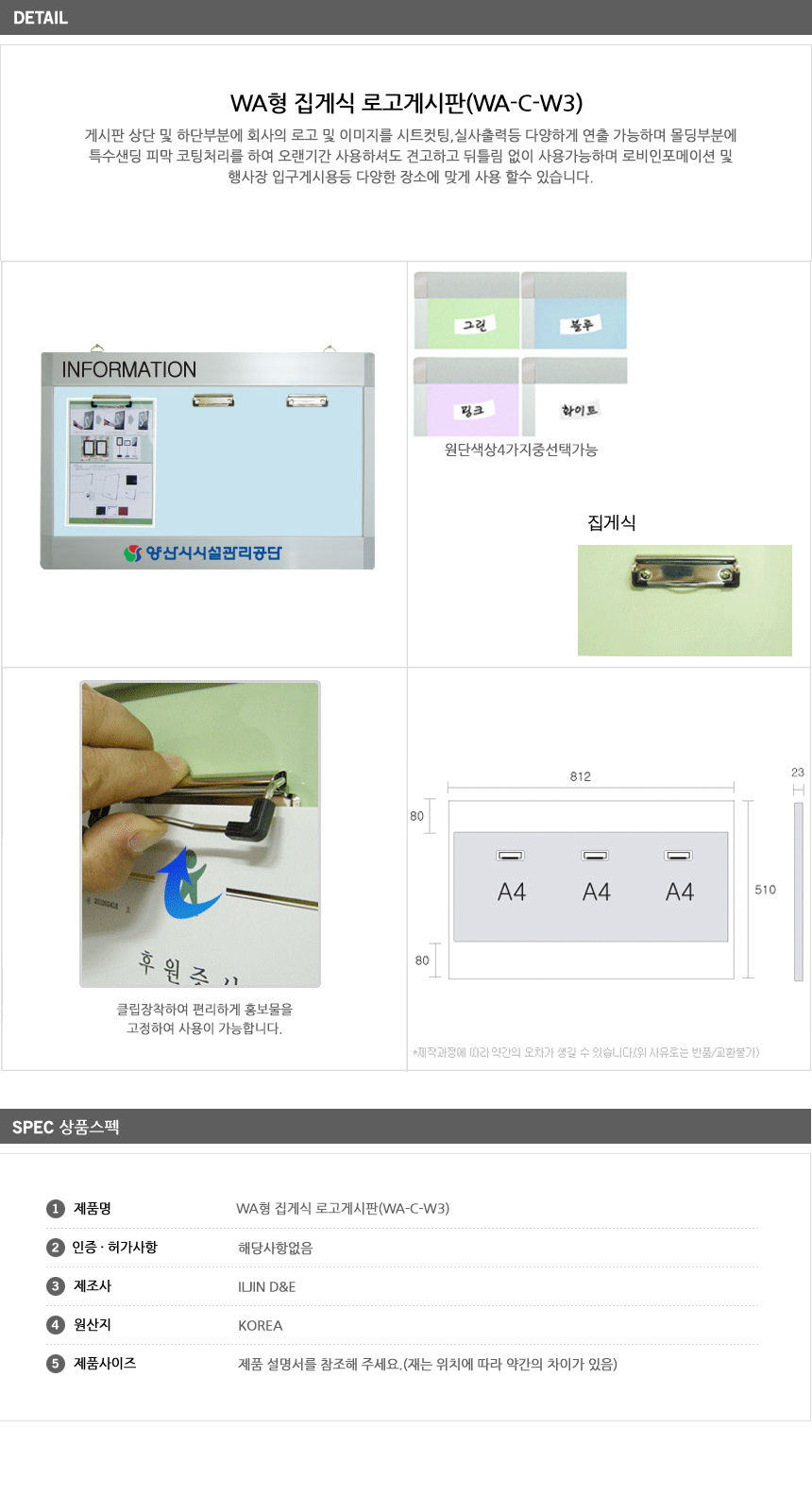 [ÀÏÁø] ¿¤¸®º£ÀÌÅÍ ¼³Ä¡ °Ô½ÃÆÇ/WAÇü Áý°Ô½Ä ·Î°í °Ô½ÃÆÇ(WA-C-W3, A4 3¸Å 880x540mm, °¡·ÎÇü, ·Îºñ ÀÎÆ÷¸ÞÀ̼Ç/Çà»çÀå ÀÔ±¸)