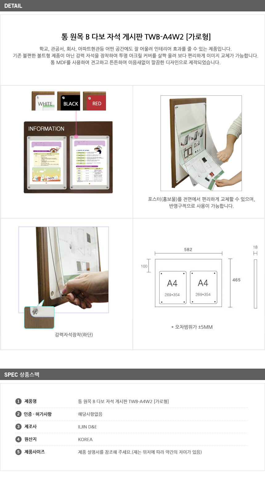 [ÀÏÁø] Åë ¿ø¸ñ B ´Ùº¸ ÀÚ¼® °Ô½ÃÆÇ(TWB-A4W2, A4 2¸Å °¡·ÎÇü 582x465mm, Çб³/°ü°ø¼­/ȸ»ç/¾ÆÆÄÆ® Çö°ü °Ô½ÃÆÇ, °­·ÂÀÚ¼® °Ô½ÃÆÇ)=>Á¦Ç°´ÜÁ¾!