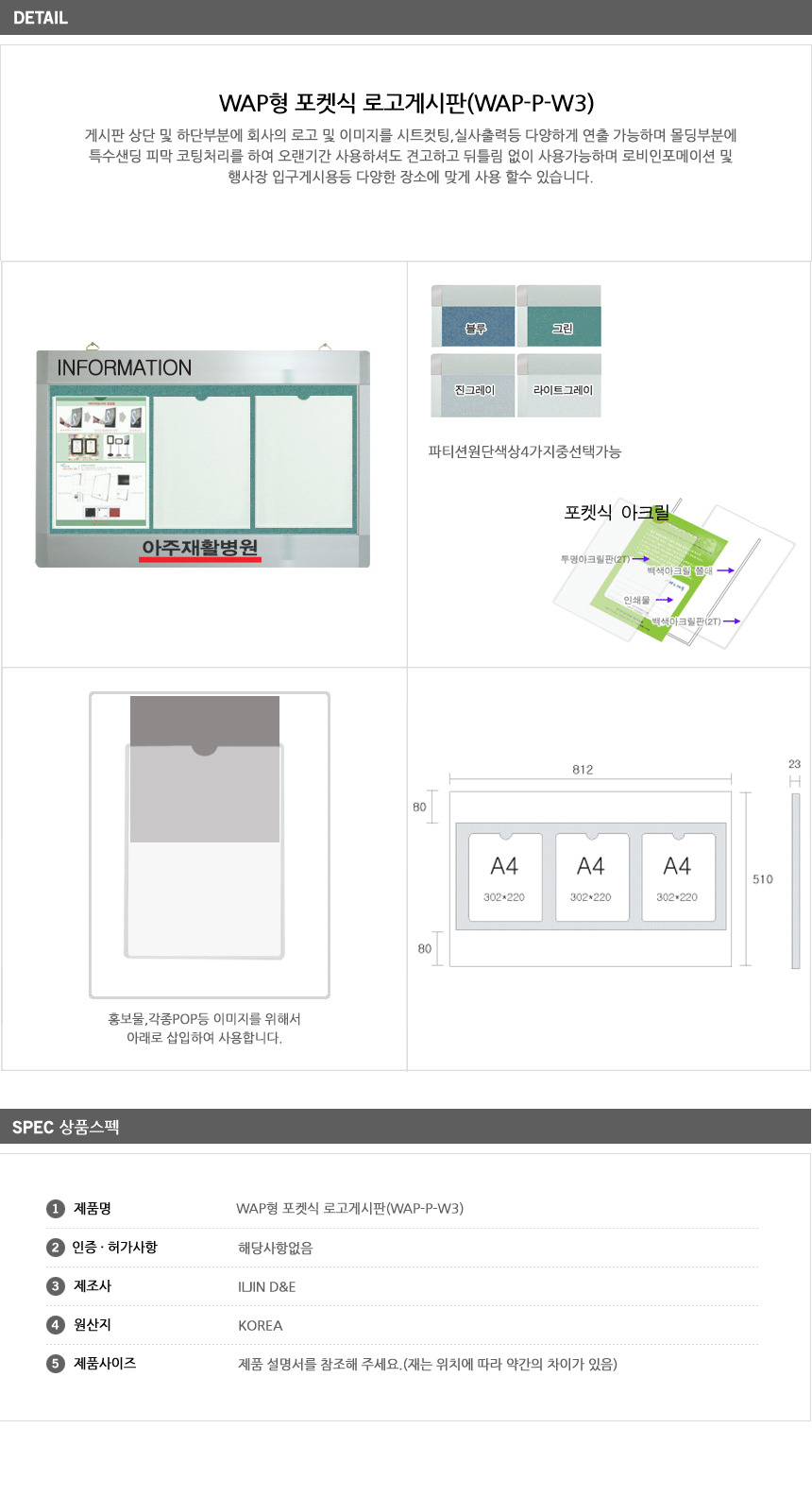 [ÀÏÁø] ¿¤¸®º£ÀÌÅÍ ¼³Ä¡ °Ô½ÃÆÇ/WAPÇü Æ÷ÄÏ½Ä ·Î°í °Ô½ÃÆÇ(WAP-P-W3, A4 3¸Å 812x510mm, °¡·ÎÇü, ·Îºñ ÀÎÆ÷¸ÞÀ̼Ç/Çà»çÀå ÀÔ±¸)