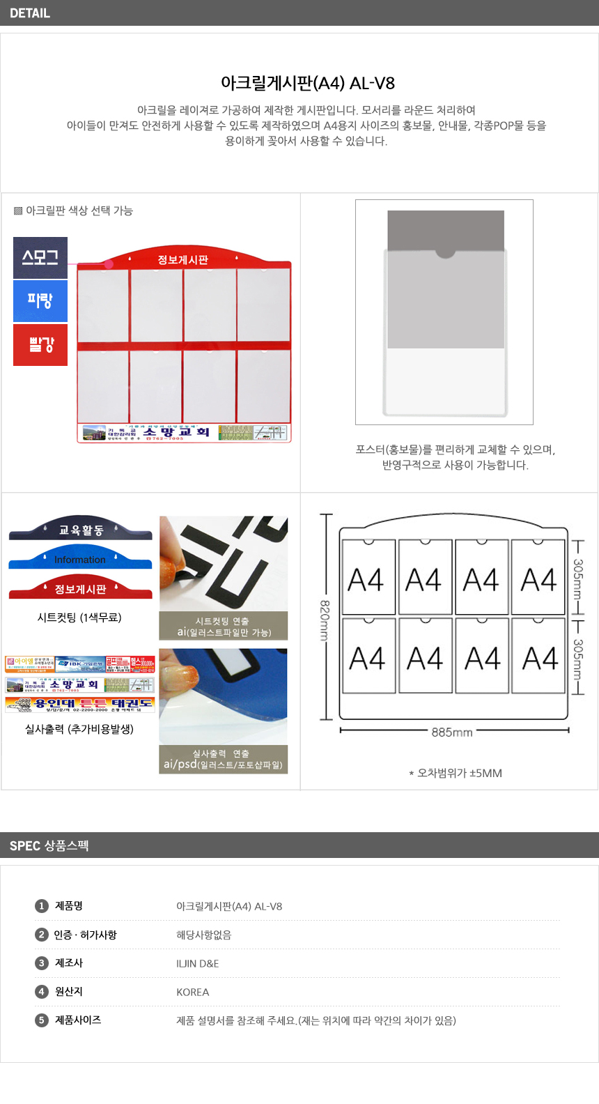 [ÀÏÁø] ¿¤¸®º£ÀÌÅÍ ¼³Ä¡ °Ô½ÃÆÇ/¾ÆÅ©¸± °Ô½ÃÆÇ(AL-V8, A4x8¸Å, 885x820mm, È«º¸¹°/¾È³»¹°/°¢Á¾POP °Ô½ÃÆÇ)=>Á¦Ç°´ÜÁ¾!