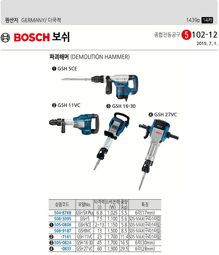[BOSCH] ÆÄ±«ÇظÓ/ÆÄ±«ÇÔ¸¶(GSH5, 7.5J, 1100Watt, 5.6Kg, SDS MAX ±¸¸®½º ŸÀÔ)