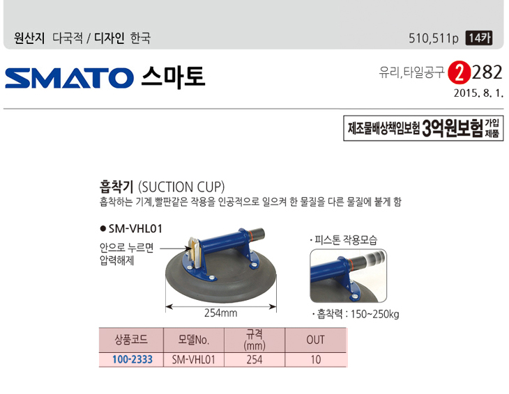 [½º¸¶Åä] ÇǽºÅæ ÈíÂø±â/ÈíÂø±â°è/»¡ÆÇ±â°è(SM-VHL01, 254mm, »ê¾÷¿ë ÈíÂø±â, ÈíÂø·Â :150~250Kg)(Suction Cup)