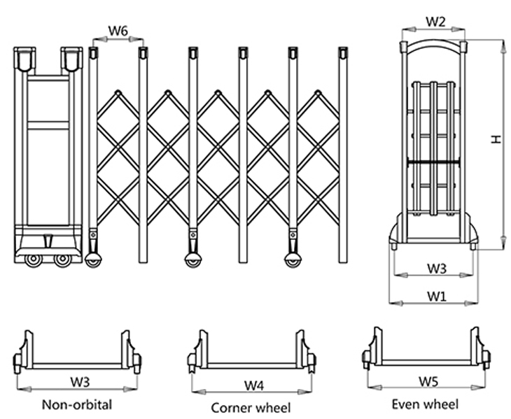 H = 1600mm, W1 = 675mm, W2 = 485mm, W3 = 600mm, W6 = 380mm