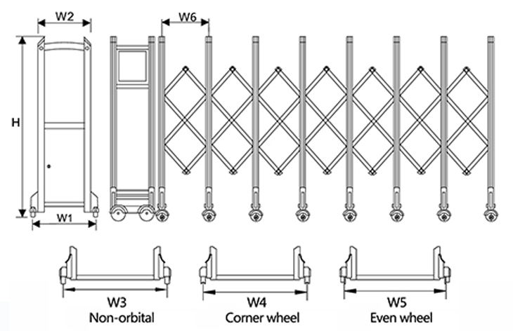 H = 1600mm, W1 = 680mm, W2 = 540mm, W3 = 600mm, W6 = 400mm