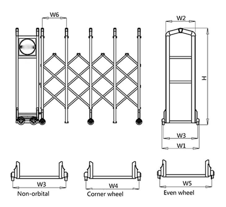 H = 1600mm, W1 = 650mm, W2 = 495mm, W3 = 570mm, W6 = 400mm