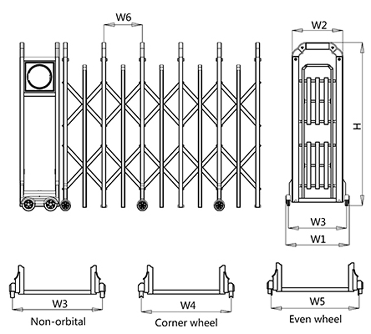 H = 1600mm, W1 = 640mm, W2 = 495mm, W3 = 570mm, W6 = 400mm