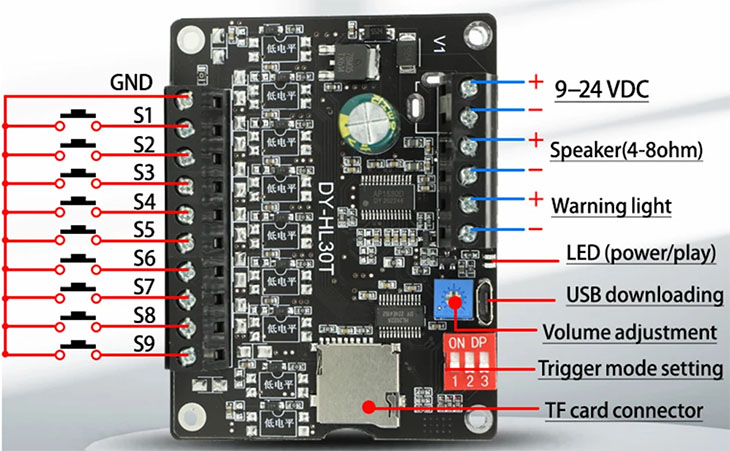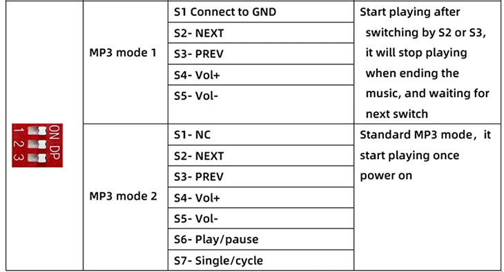 110 : CUT IN PLAY(Play background music when power on S1~S9 can trigger the music CHABO file)