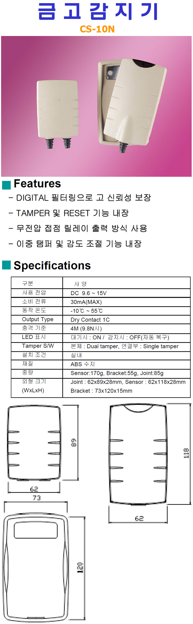 JOINT:62x89x28mm, SENSOR:68x118x29mm, BRACKET:73x125x9mm |