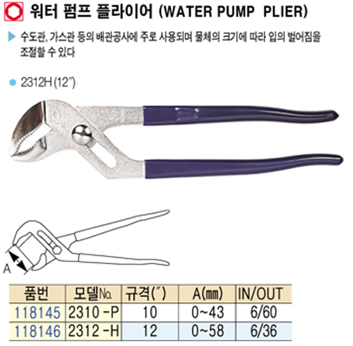 [·Îº¸½ºÅÍ] ¿öÅÍ ÆßÇÁ ÇöóÀ̾î (Water pump plier) :2312-P(12")