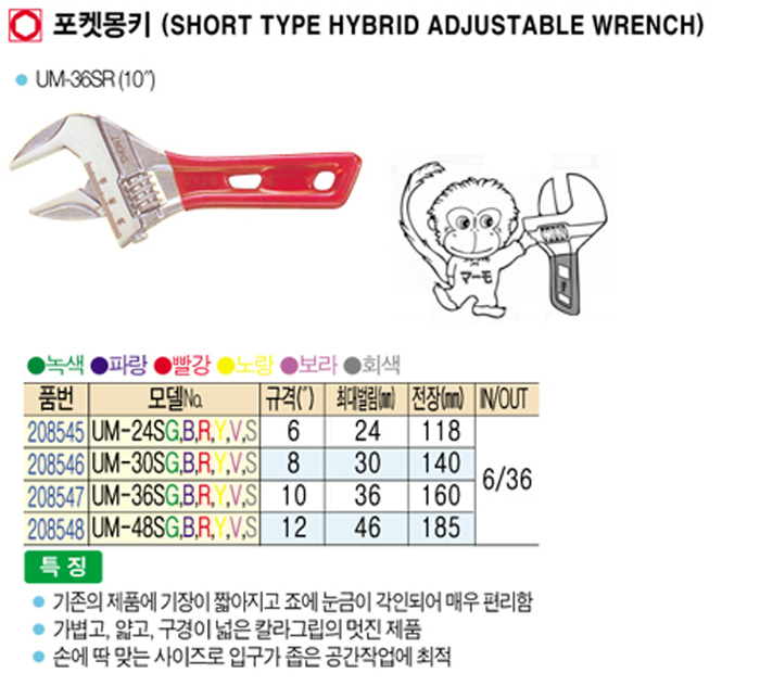 [·Îº¸½ºÅÍ] Æ÷ÄϸùŰ(Short type hybrid adjustable wrench) UM-30S