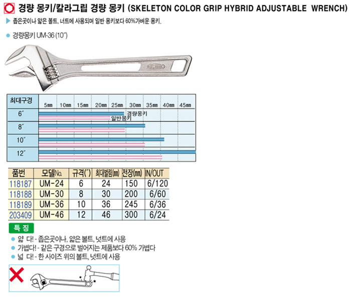 [·Îº¸½ºÅÍ] °æ·®¸ùŰ(Skeleton grip hybrid adjustable wrench) UM-36
