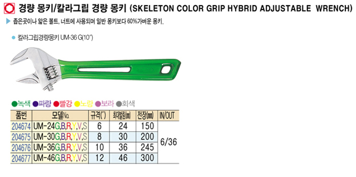[·Îº¸½ºÅÍ] Ä®¶ó±×¸³ °æ·®¸ùŰ(Skeleton color grip hybrid adjustable wrench) UM-30