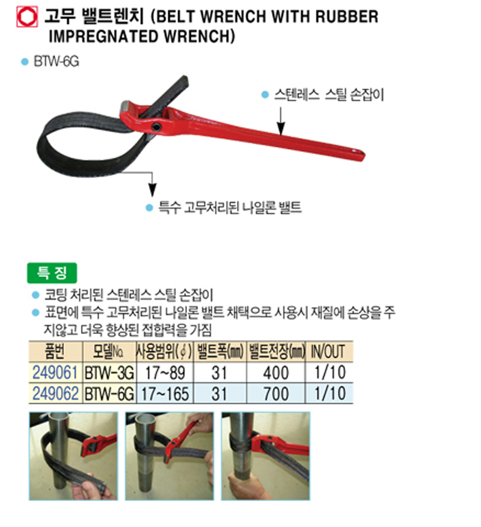 [È÷Æ®] °í¹« ¹ëÆ®·»Ä¡(Belt wrench with rubber impregnated wrench) BTW-6G