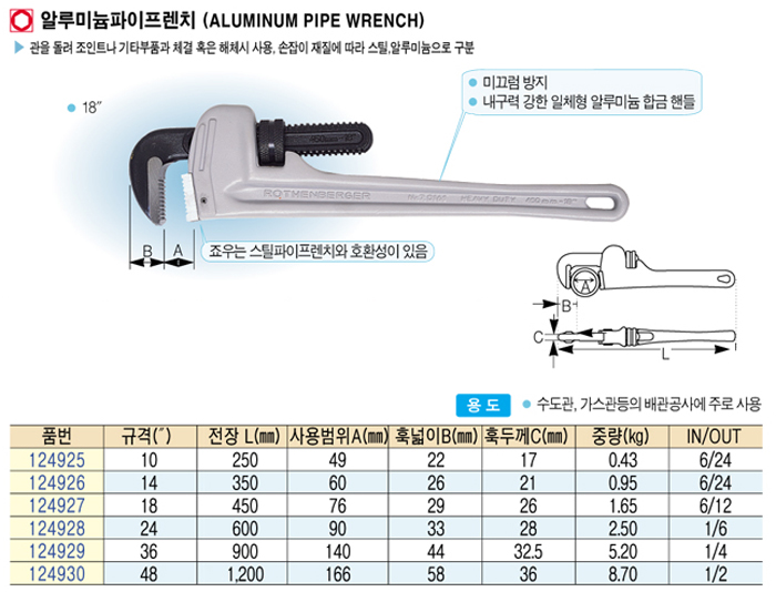 [·Îµ§º£¸£°Å] ¾Ë·ç¹Ì´½ ÆÄÀÌÇÁ ·»Ä¡(Aluminum pipe wrench) 10