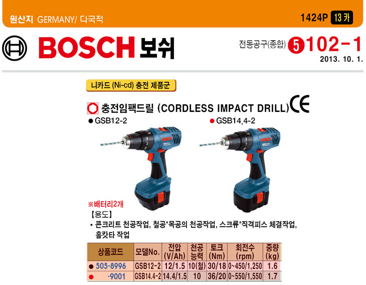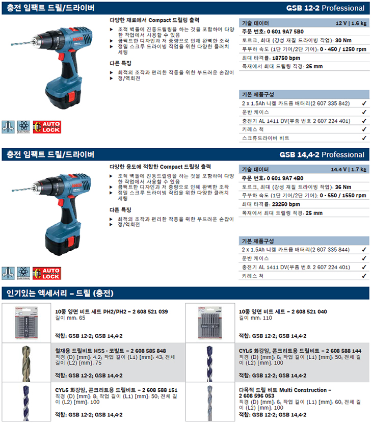 [BOSCH] ÃæÀüÀÓÆÑµå¸±(GSB 14.4-2, Ni-cd¹èÅ͸®/14.4V/1.5Ah)(Cordless Impact Drill)