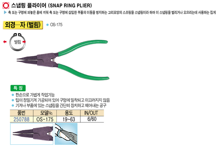 [·Îº¸½ºÅÍ] ½º³À¸µ ÇöóÀ̾î(Snap ring plier) ¿Ü°æ ¤Ñ ÀÚ(¹ú¸²) OS-175