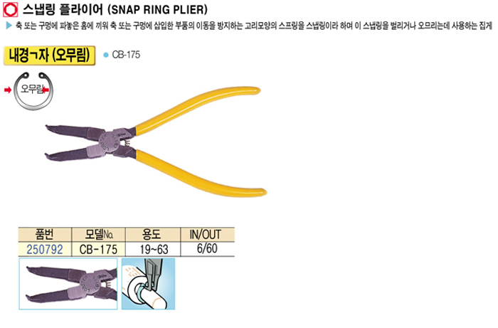 [·Îº¸½ºÅÍ] ½º³À¸µ ÇöóÀ̾î(Snap ring plier) ¿Ü°æ ¤¡ ÀÚ(¿À¹«¸²) CB-175