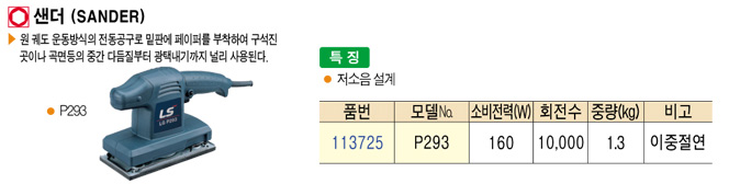 »ç¾ç ¡£¼ÒºñÀü·Â : 160W ¡£È¸Àü¼ö : 10,000rpm ¡£Áß·® : 1.4kg ¡£»÷µåÆäÀÌÆÛ 93X228mm : ÆÐµåÄ¡¼ö : 93 ¡¿ 185mm