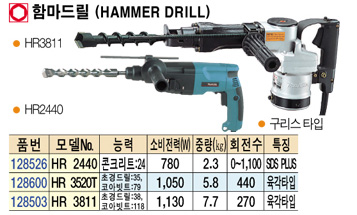 »ç¾ç ¼ÒºñÀü·Â : 780W ÀÛ¾÷´É·Â : ÄÜÅ©¸®Æ® 24mm, öÀç 13mm, ¸ñÀç 32mm ºÐ´çŸ°Ý¼ö : 0 - 4,500 ¹«ºÎÇϼӵµ : 0 - 1,100rpm ÀüÀå : 352mm Áß·® : 2.3kg Àü¿øÄÚµå : 5.0m