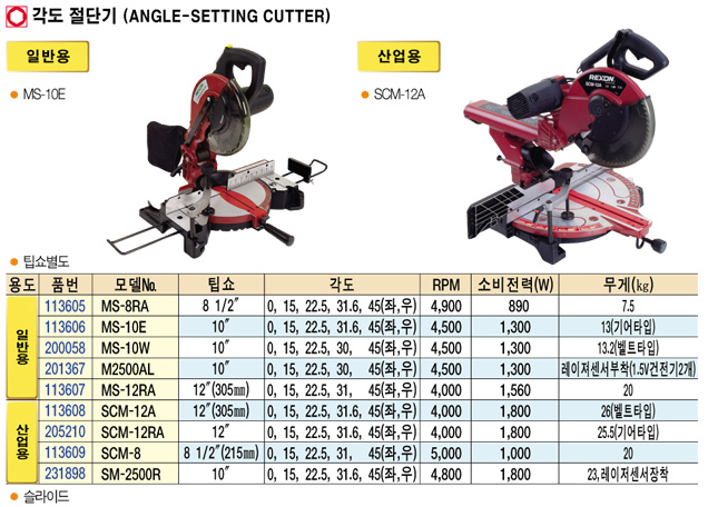 °¢µµ : 0°, 15°, 22.5°, 31.6°, 45°, R&L