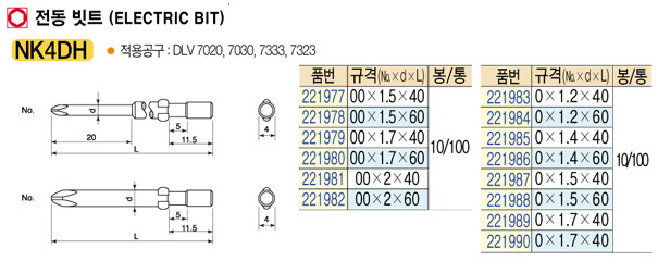 [DELVO] 00x1.7x60 Àüµ¿ ºøÆ®(ELECTRIC BIT)