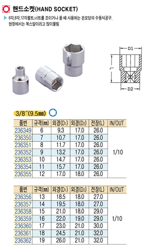 [Åä³×] ÇÚµå¼ÒÄÏ(Hand socket) 3/8" (9.5mm) 6~12mm