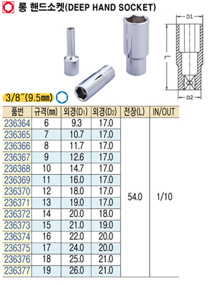 [Åä³×] ·Õ ÇÚµå¼ÒÄÏ(Deep hand socket) 3/8"(9.5mm) 6mm