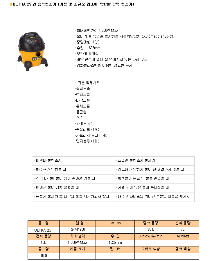 [¼¥¹é] °Ç½À½Ä Áø°øÃ»¼Ò±â(ULTRA25, 25¸®ÅÍ, 1600Watt)(Wet/Dry Vaccum Cleaner)=>Á¦Ç°´ÜÁ¾!
