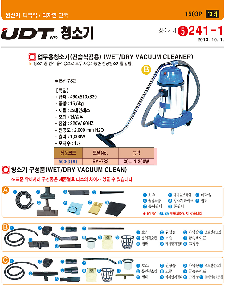 [UDT] ¾÷¹«¿ëû¼Ò±â(BY-782, °Ç½Ä/½À½Ä °â¿ë, 30¸®ÅÍ, 1200Watt)(WET/DRY VACUUM CLEANER)=>Á¦Ç°´ÜÁ¾!
