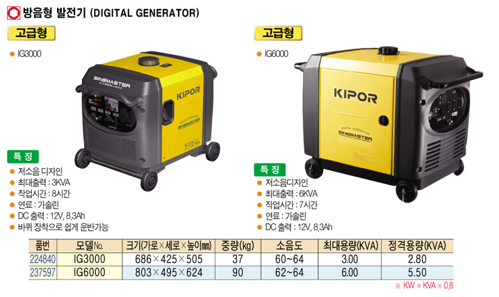 [KIPOR] IG3000 ¹æÀ½Çü ¹ßÀü±â (DIGITAL GENERATOR) (ÁÖ¹®Àü Àç°íÈ®Àοä¸Á)