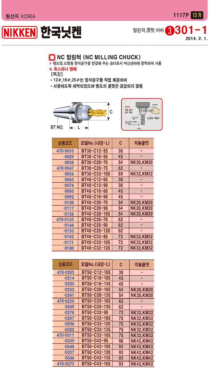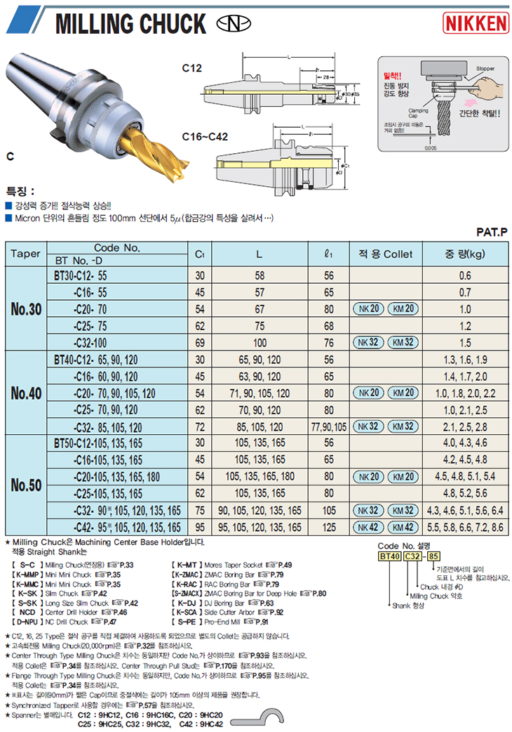 [NIKKEN] NC ¹Ð¸µ ô(BT30-C12~BT30-C32, ±âÀå:55~100mm, C:¨ª30~69)(NC MILLING CHUCK)