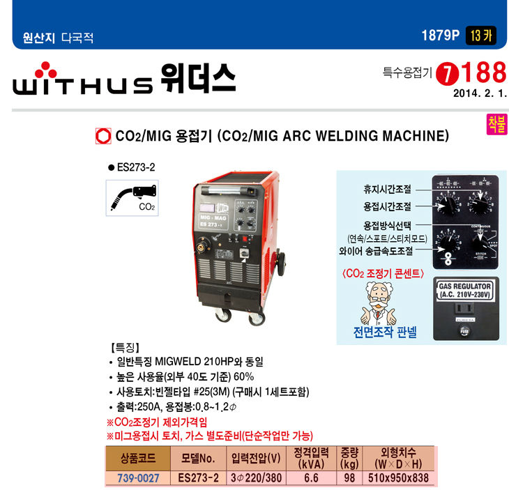 [À§´õ½º] CO2/MIG ¿ëÁ¢±â(MIG-MAG ES273-2, »ï¼º220/380V, 6.6KVA)(CO2/MIG ARC Welding Machine)