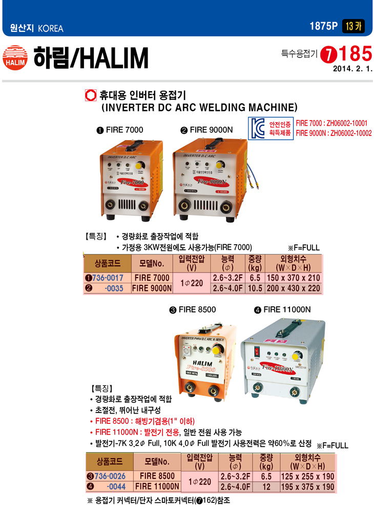 [Çϸ²] ÈÞ´ë¿ëÀιöÅÍ¿ëÁ¢±â(FIRE-11000N, ´Ü»ó220V, ¹ßÀü±â Àü¿ë)(Inverter DC ARC Welding Machine)=>Á¦Ç°´ÜÁ¾!