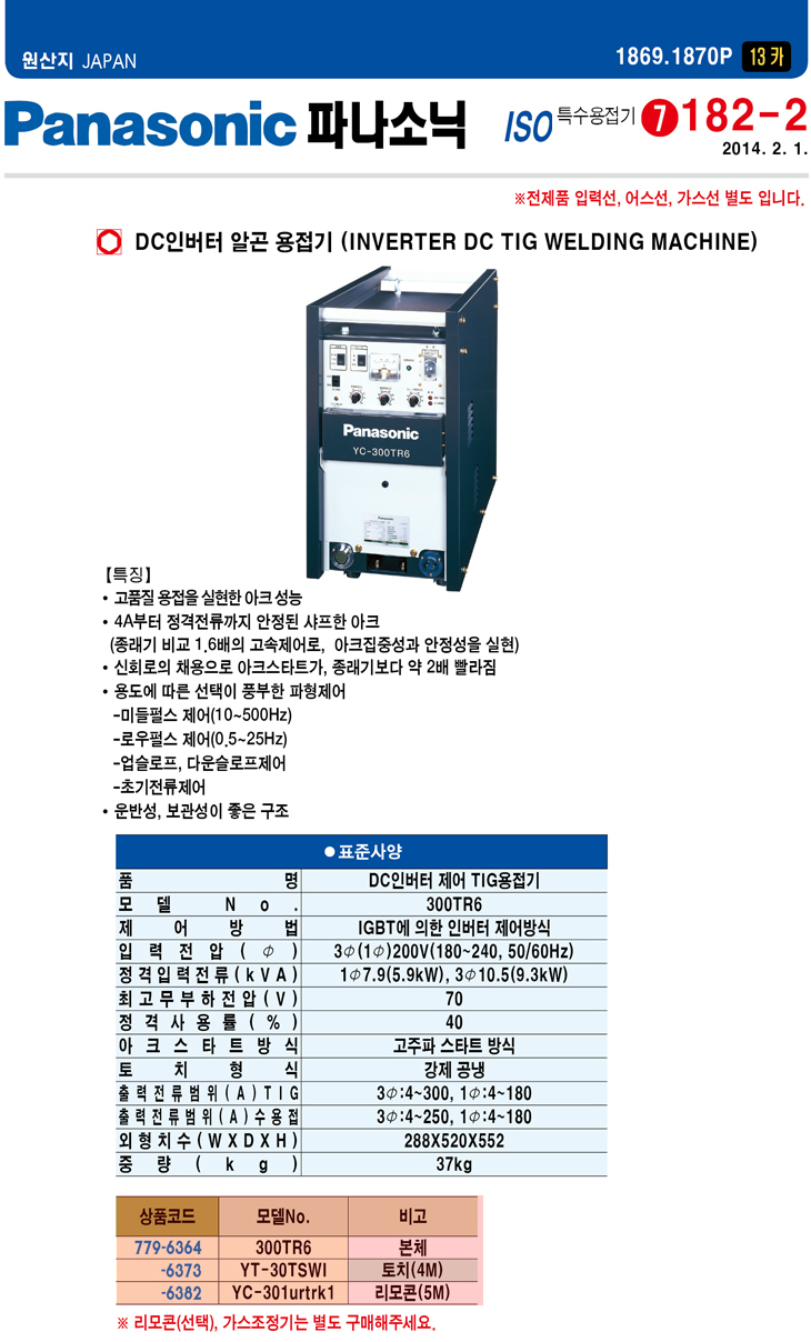 [ÆÄ³ª¼Ò´Ð] DCÀιöÅÍ ¾Ë°ï ¿ëÁ¢±â(300TR6, º»Ã¼)(Inverter DC TIG Welding Machine)=>Á¦Ç°´ÜÁ¾!