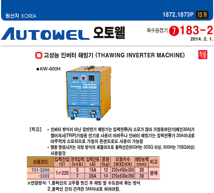 [¿ÀÅäÀ£] °í¼º´É ÀιöÅÍ ÇØºù±â(KW-600H, 5KVA)(Thawing Inverter Machine)