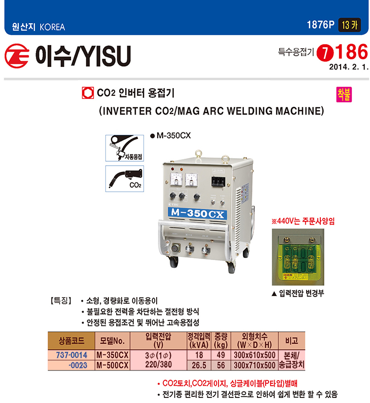 [À̼ö] CO2 ÀιöÅÍ ¿ëÁ¢±â(M-500CX, »ï»ó220/380V, 26.5KVA)(Inverter CO2/MAG ARC Welding Machine)