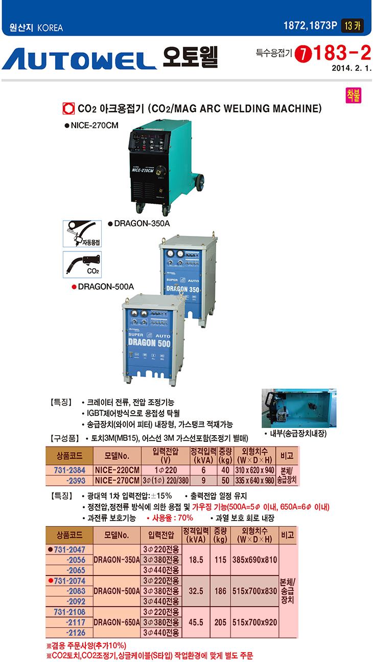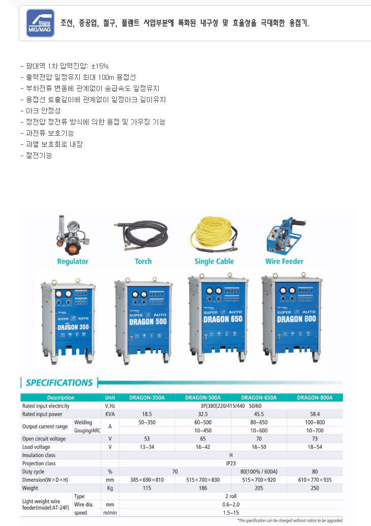 [¿ÀÅäÀ£] CO2 ¾ÆÅ©¿ëÁ¢±â(DRAGON-650A, 45.5KVA, ÀÔ·ÂÀü¿ø¼±Åð¡´É)(CO2/MAG ARC Welding Machine)