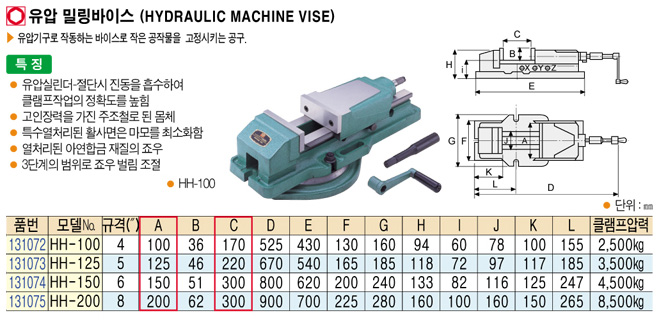 [HOMGE] HH-200 À¯¾Ð ¹Ð¸µ¹ÙÀ̽º (HYDRAULIC MACHINE VISE)=>Á¦Ç°´ÜÁ¾!