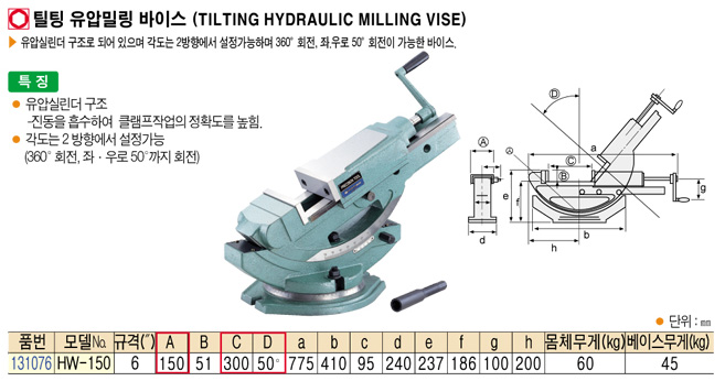 [HOMGE] HHY-150 Æ¿ÆÃ À¯¾Ð¹Ð¸µ ¹ÙÀ̽º (TILTING HYDRAULIC MILLING VISE)=>Á¦Ç°´ÜÁ¾!