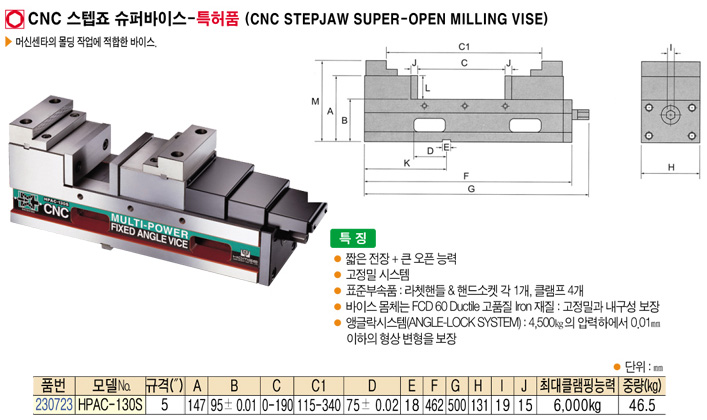 [HOMGE] HPAC-130S CNC ½ºÅÜÁÒ ½´ÆÛ¹ÙÀ̽º (CNC STEPJAW SUPER-OPEN MILLING VISE):´ÜÁ¾!!