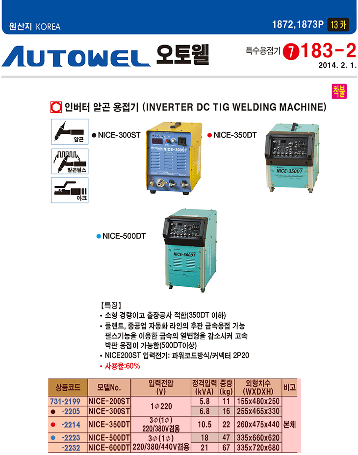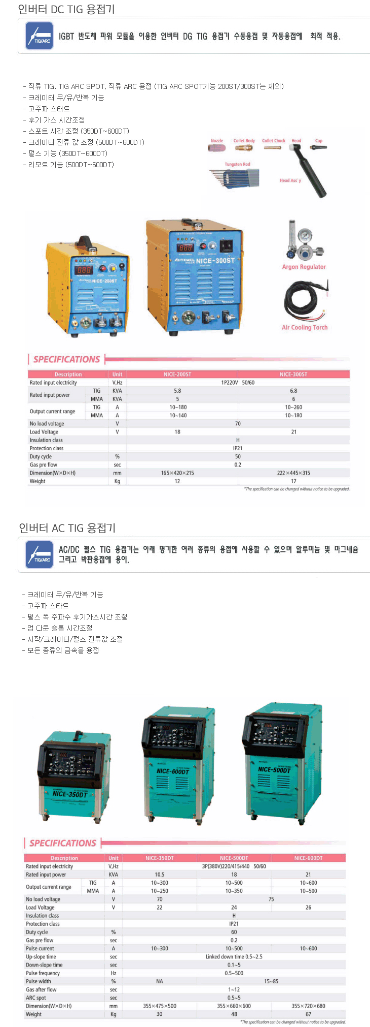 [¿ÀÅäÀ£] ÀιöÅÍ ¾Ë°ï ¿ëÁ¢±â(NICE-600DT, »ï»ó220/380/440V°â¿ë, 21.0KVA)(Inverter DC TIG Welding Machine)