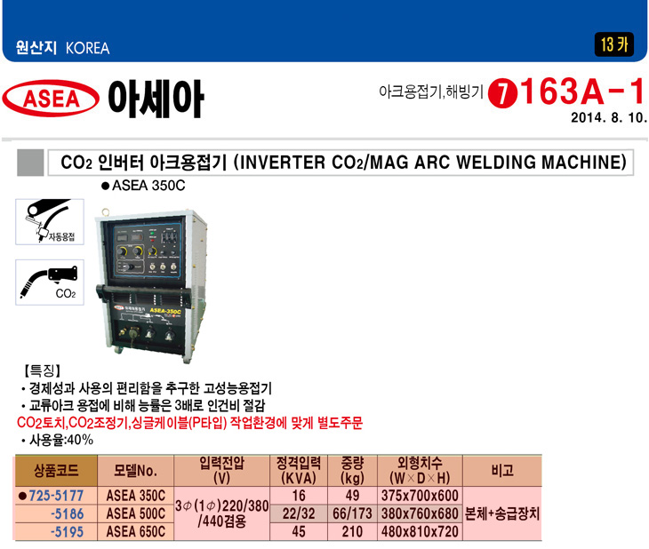 [¾Æ¼¼¾Æ] CO2 ÀιöÅÍ ¾ÆÅ© ¿ëÁ¢±â(ASEA 650C, »ï»ó/´Ü»ó220/380/440V°â¿ë, 45KVA, º»Ã¼+¼Û±ÞÀåÄ¡)(ÁÖ¹®Àü Àç°íÈ®ÀÎ)