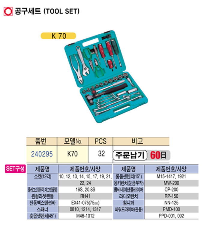 [Åä³×] °ø±¸¼¼Æ®(Tool set) K70:1/27 ÇöÀç ÀϽÃǰÀý!!