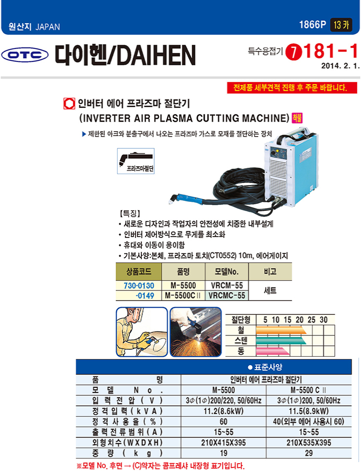 [´ÙÀÌÇî] ÀιöÅÍ ¿¡¾î ÇÁ¶óÁ Àý´Ü±â(M-5500/VRCM-55, Ç¥ÁØÇü:¿ÜºÎ¿¡¾î»ç¿ë)(Inverter Air PLASMA Cutting Machine)=>Á¦Ç°´ÜÁ¾!